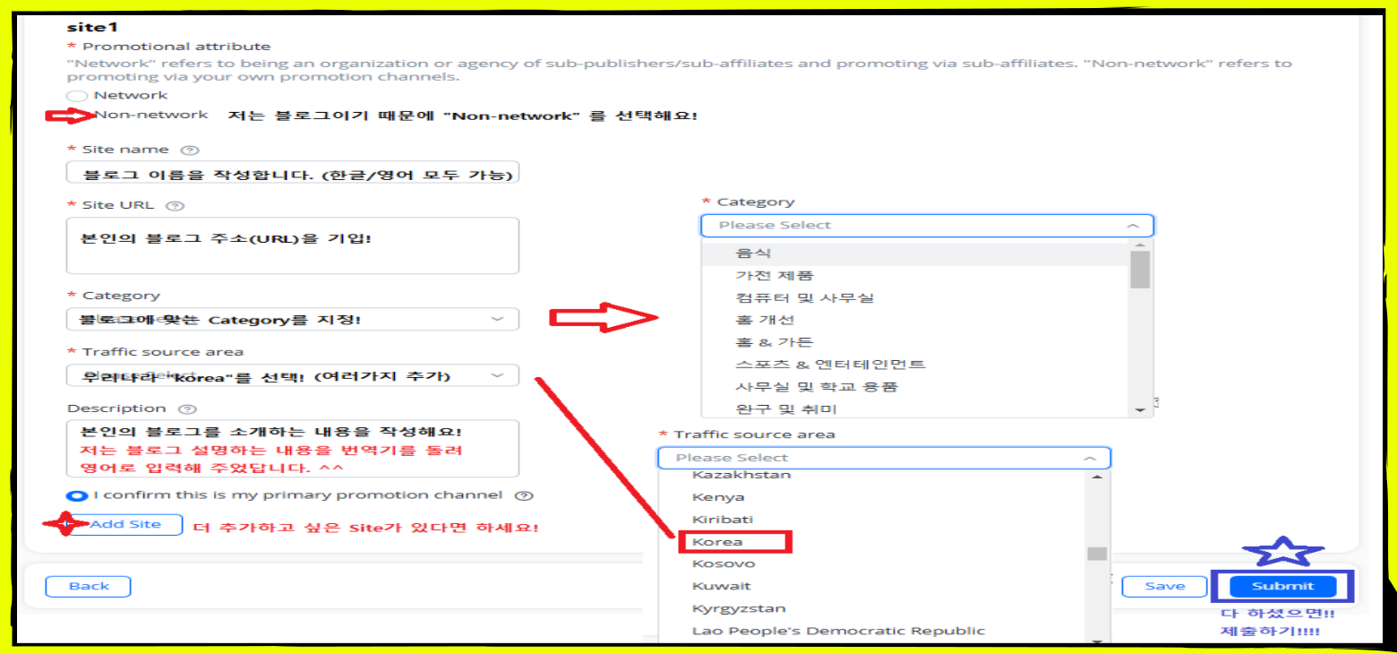 알리익스프레스 어필리에이트 파트너스 신청자료 Site information 작성방법