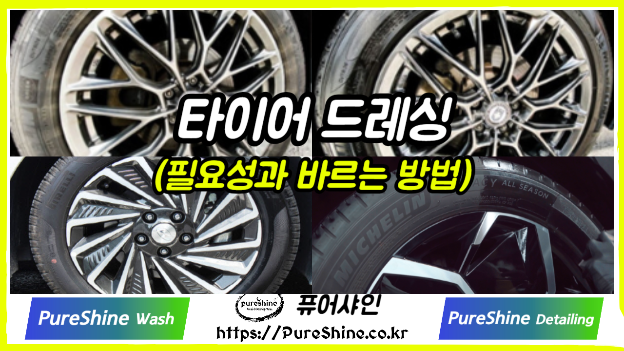 타이어에 광택을 더하기 위해 사용하는 제품은 레자 왁스타이어 드레싱제로 나뉘어요.